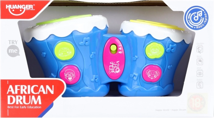 La batterie électronique bleue HUANGER inspire les petits musiciens à découvrir la musique. Deux tambours tactiles, des boutons colorés et des lumières clignotantes accompagnent des mélodies et rythmes amusants qui favorisent le développement des compétences des enfants.
