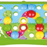Découvrez un jeu créatif qui développe à la fois l’imagination et les compétences. Les enfants insèrent des chevilles colorées dans des gabarits aux motifs naturels (par ex. chenille, fleurs ou animaux) et entraînent la précision, la patience et la reconnaissance des couleurs. Les grands trous et chevilles se tiennent bien en main et facilitent la manipulation pour les petites mains.