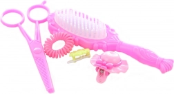 L’emballage comprend un riche ensemble d’accessoires : peigne, élastiques, spirales et barrettes, permettant un jeu amusant et sûr. Le produit est conçu pour les petites mains et favorise l’imagination ainsi que l’habileté.