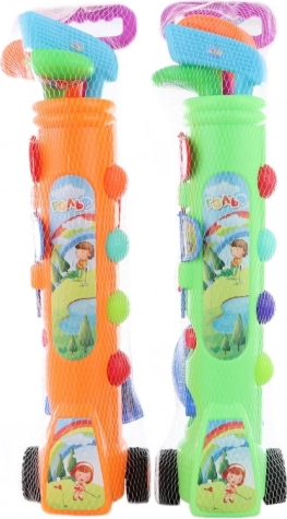 Amusant ensemble de golf pour enfants avec chariot qui apportera aux petits joueurs beaucoup de mouvement et de joie. Il comprend 3 clubs de golf, 4 balles, 2 trous en plastique et d’autres accesso... Voir plus