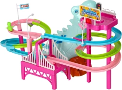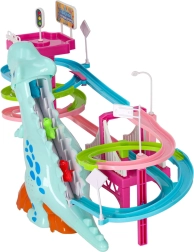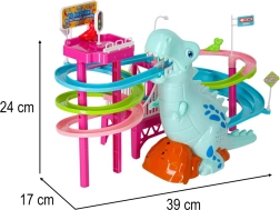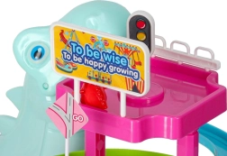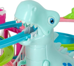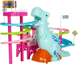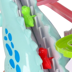 Cette piste de course colorée au thème dinosaure ravira les petits comme les plus grands. Dès que les petites voitures en forme de dinosaures se mettent en route, le grand dinosaure émet des rugissements réalistes et la piste s’illumine grâce aux LED. Un seul interrupteur permet de contrôler facilement le mouvement et les effets, pour que les enfants puissent se concentrer pleinement sur le jeu.