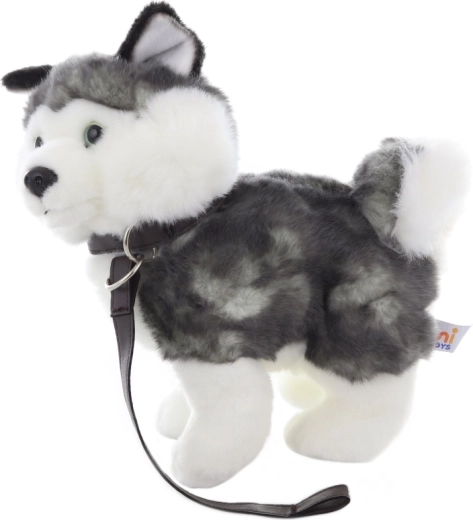 Husky en peluche d’environ 25 x 23 x 11 cm. Longueur de la laisse : environ 22,5 cm. Âge 0+.