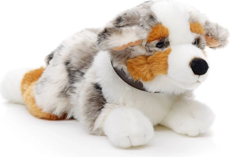 Découvrez un ami en peluche inspiré de la race populaire du Berger australien. Sa coloration fidèle dans des nuances de blanc, gris et brun, ses yeux réalistes et sa fourrure douce garantissent un coup de cœur au premier toucher. Avec sa longueur de 42 cm, il est parfait pour les câlins et comme compagnon de voyage.