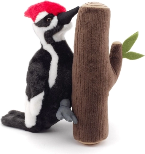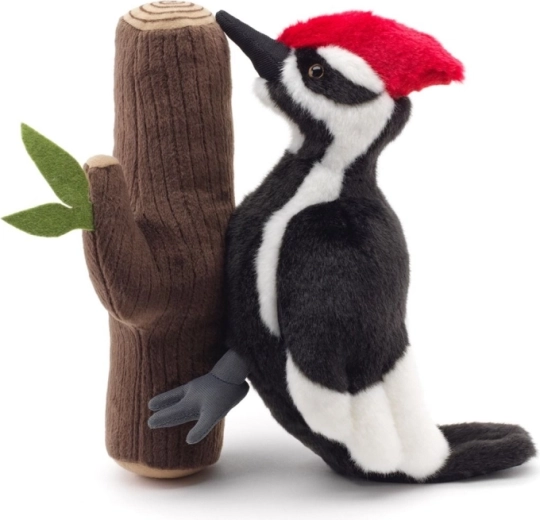 Ce pivert en peluche, avec sa huppe rouge caractéristique et son plumage noir et blanc contrasté, est fixé à un « arbre » doux avec des feuilles, pour un rendu des plus réalistes. Grâce à sa peluche moelleuse, il est idéal pour les câlins, la décoration de la chambre d’enfant et les jeux imaginatifs.