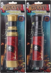 Une élégante longue-vue de pirate pour enfants avec motif tête de mort et os croisés, un accessoire parfait pour tous les petits aventuriers. Sa conception en plastique léger, son système télescopique facile et ses dimensions compactes en font un jouet idéal pour les voyages comme pour les jeux à la maison. Plastique léger, structure télescopique et design pirate pour des aventures sans fin.