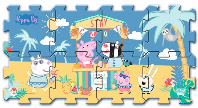 Profitez d’un jeu amusant et sûr avec ces puzzles en mousse souple à l’effigie de PEPPA PIG et de ses amis. Ce tapis en matériau de qualité, d’une épaisseur de 1,5 cm, est lavable, inoffensif pour la santé et idéal pour les enfants à partir de 2 ans. Avec huit pièces, créez une surface d’environ 117 × 60 cm ou construisez un cube, un tunnel ou une décoration murale originale.