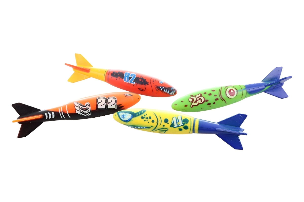 Amusantes et sûres, ces fusées aquatiques de plongée de 12,5 × 3 cm sont proposées en set de 4 pièces. Idéales pour agrémenter l’entraînement de natation et de plongée, travailler l’orientation sous l’eau et jouer dans une piscine à domicile (sous la surveillance d’un adulte). Convient aux enfants à partir de 5 ans.