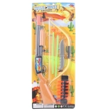 Ce set western offre aux enfants des heures de jeu créatif et d’action en toute sécurité. Grâce aux fléchettes à ventouse, les jeunes tireurs peuvent s’entraîner à la précision sans risque de blessure, tandis que l’arc avec deux flèches développe la coordination et la concentration. Le petit couteau en plastique complète l’équipement pour des jeux thématiques en intérieur comme en extérieur.