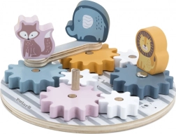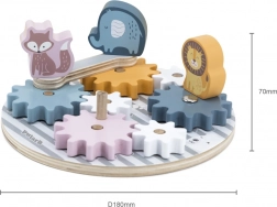 Encouragez le jeu et le développement avec nos blocs en bois à engrenages, où la mécanique devient un jeu. Le set comprend 7 pièces d’engrenages colorées, 3 figurines d’animaux amusantes et une base sur laquelle vous pouvez placer les roues dentées afin que l’une mette les autres en mouvement.