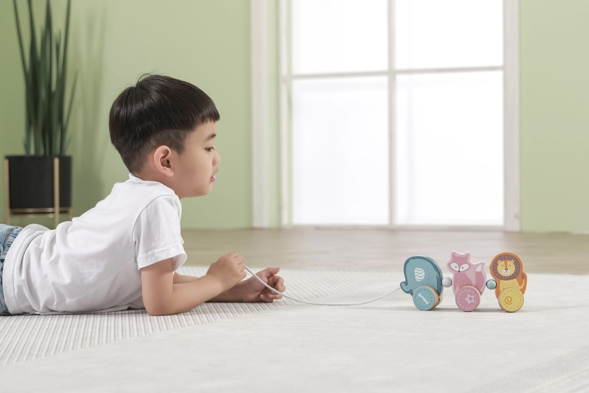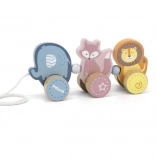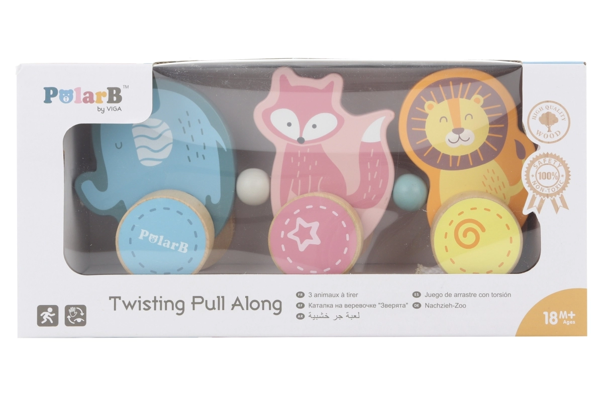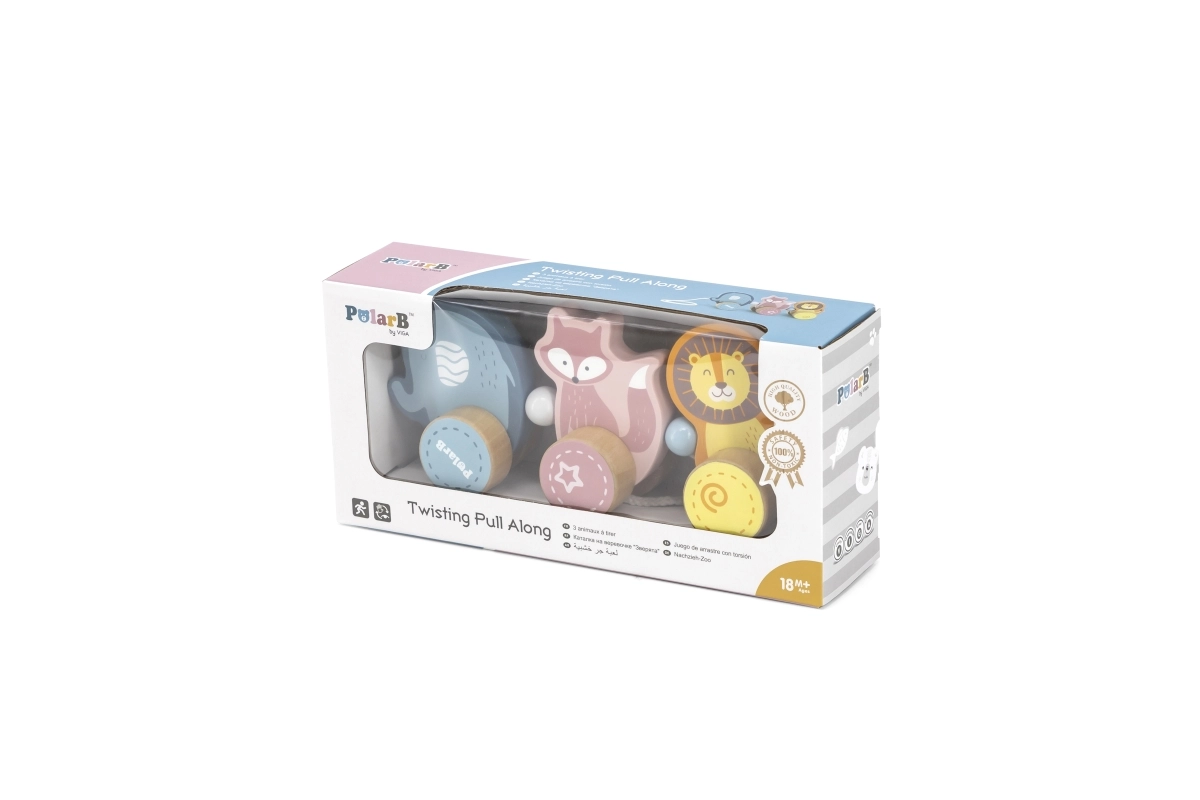 Ce jouet à tirer en bois de haute qualité, dans de doux tons pastels, est conçu pour les tout-petits qui apprennent à marcher et à découvrir le monde. Trois adorables animaux – éléphant, renard et lion – sont reliés et roulent en douceur sur des roues en bois. Grâce à la corde de traction solide, les jouets se dirigent facilement, motivent les enfants à bouger et développent naturellement l’équilibre et la coordination.