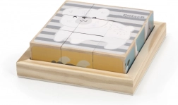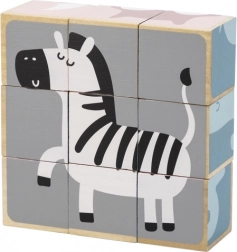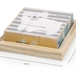 Découvrez un jouet en bois intemporel qui divertit et instruit à la fois. Avec 9 cubes, créez au total 6 motifs d’animaux différents – par exemple un ours, un renard, un koala, un zèbre ou un hérisson. Chaque face de cube correspond à une image différente, ce qui permet aux enfants d’exercer leur attention, leur patience et leur représentation spatiale.