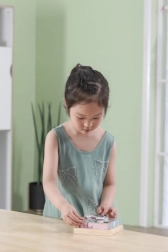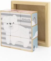 Chaque face du cube appartient à un motif différent. Les enfants s’amusent à assembler un ours, un koala, un renard, un hérisson, un zèbre et d’autres animaux tout en exerçant leur raisonnement logique.