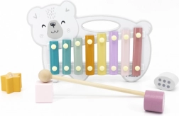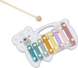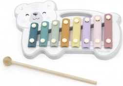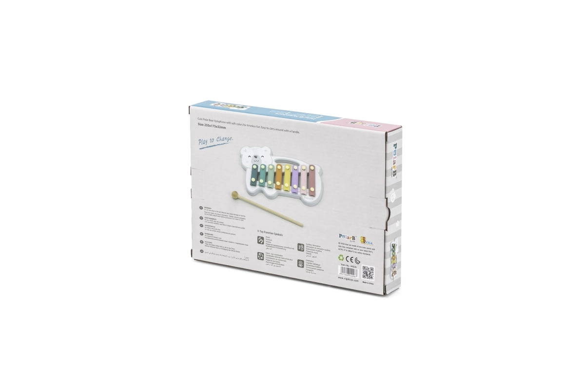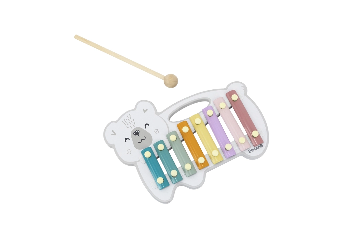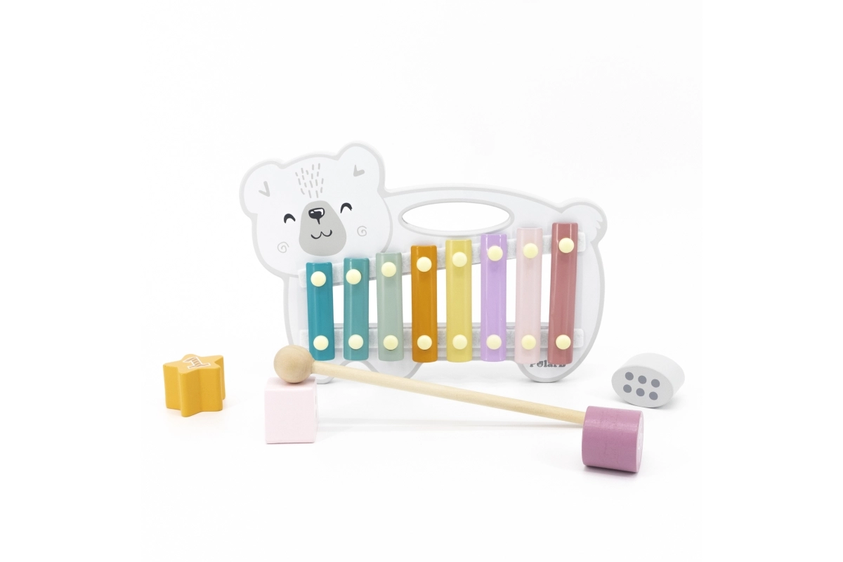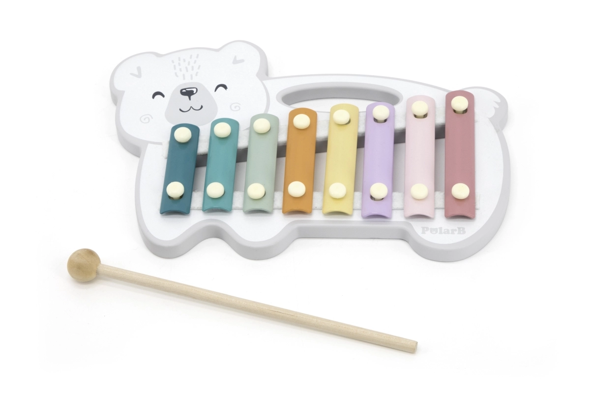 Le xylophone en bois en forme d’ours polaire allie une esthétique ludique à un instrument de musique fonctionnel. Les lames métalliques aux couleurs pastel produisent des sons agréables lorsqu’on les frappe avec la mailloche en bois, incitant naturellement les enfants à expérimenter les sons et le rythme.