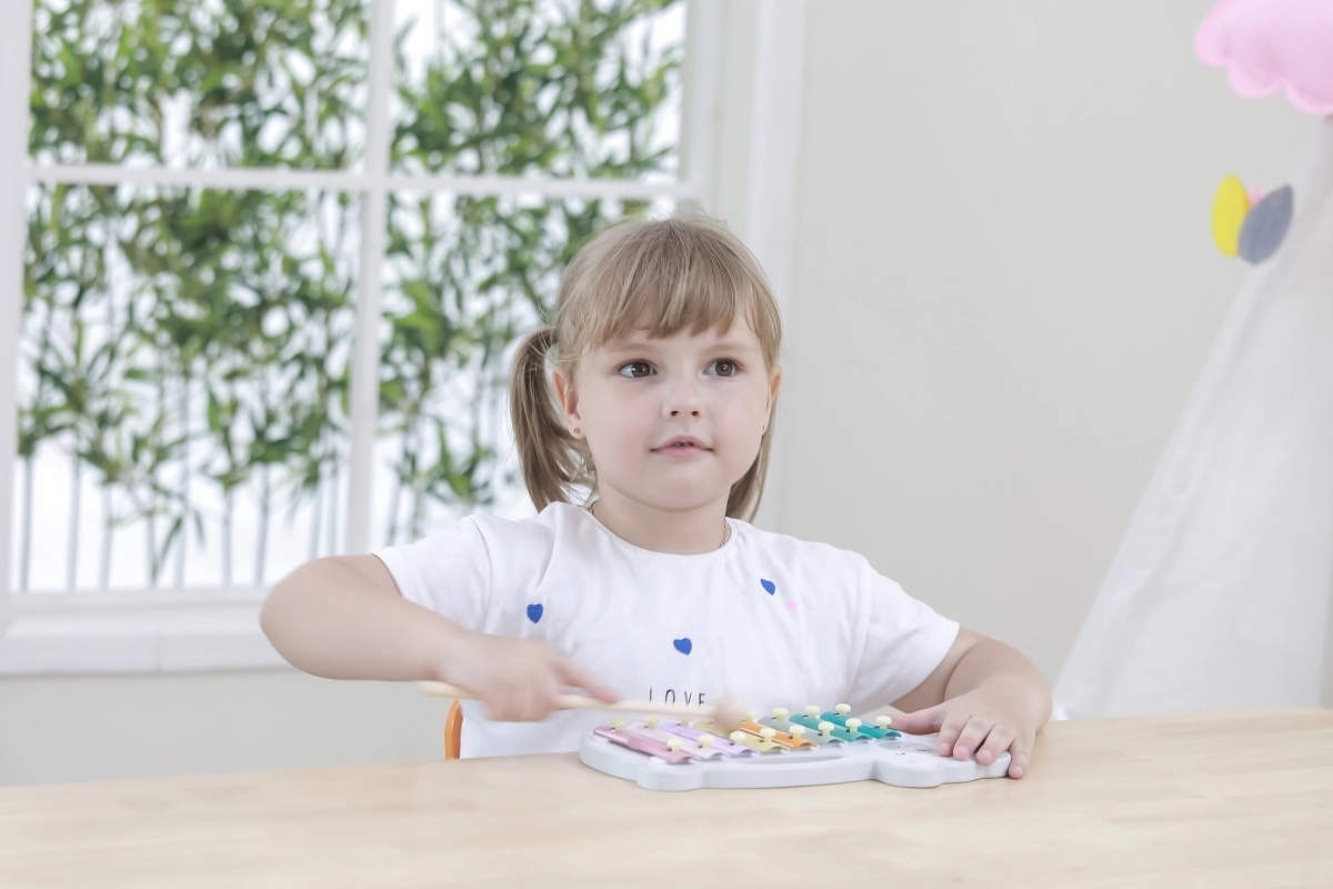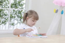 Huit lames pastel encouragent les enfants à explorer les sons, le rythme et de simples mélodies. Parfait pour développer la perception auditive et la créativité.