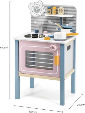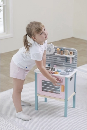 Transformez le jeu des enfants avec cette charmante cuisine en bois. Destinée aux jeunes cuisinières et cuisiniers, elle permet de simuler la cuisson et la pâtisserie grâce à ses éléments réalistes.