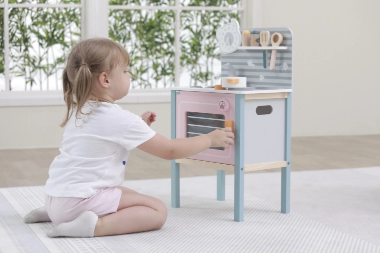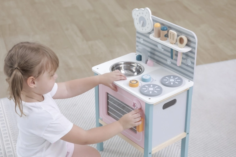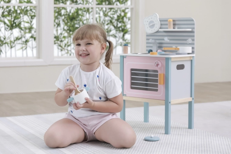 La cuisine est conçue pour un jeu en toute sécurité à partir de trois ans, favorisant le développement de la motricité fine et le jeu d’imitation.