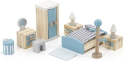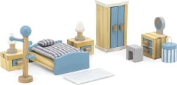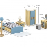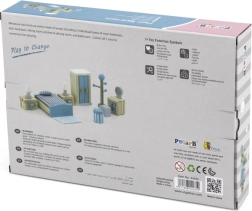 Le lit, les 2 tables de chevet, l’armoire, le portemanteau et la coiffeuse avec tabouret complètent tout intérieur miniature. Les enfants peuvent facilement disposer les meubles et créer leurs propres histoires.