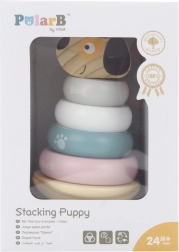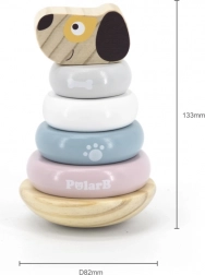 Cette pyramide à empiler au motif de petit chien apporte aux enfants la joie de la découverte et de l’apprentissage. Les pièces en bois lisses aux douces couleurs pastel se tiennent facilement même par de petites mains, et l’empilement des anneaux sur la tige favorise la concentration, la patience et la représentation spatiale. Une base stable assure un jeu en sécurité, et la mignonne tête de chien motive à recommencer encore et encore.