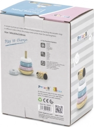 La pyramide est fabriquée en bois de qualité et finie avec des peintures à l’eau résistantes et non toxiques. Grâce à ses dimensions d’environ 13 cm de hauteur et 8,5 cm de diamètre, elle convient autant à la chambre d’enfant qu’aux déplacements. Le produit répond à des normes de sécurité strictes et porte le marquage CE – un choix idéal pour un premier jouet éducatif.