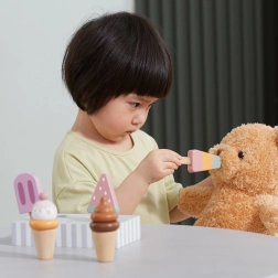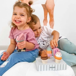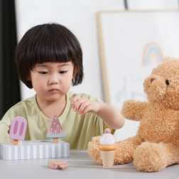 Un ensemble coloré de cinq esquimaux en bois sur un présentoir robuste pour des jeux créatifs de marchande et de cuisine. Des jouets en bois de qualité avec des peintures non toxiques qui favorisent la motricité fine, l’imagination et les compétences sociales. Idéal pour les jeux de rôle et une présentation et un rangement stylés dans la chambre d’enfant.