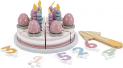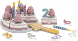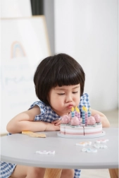 Adorable gâteau d’anniversaire en bois à découper de la marque VIGA, collection POLARB, offrant des heures de jeu créatif et d’apprentissage par le jeu. Il se compose de 6 parts de gâteau, de bougies amovibles, de fraises, d’une assiette, d’une pelle en bois et de dés chiffrés pour les premiers calculs. Fabriqué en bois de qualité et peint avec des couleurs non toxiques – un choix sûr pour les petits chefs.