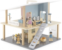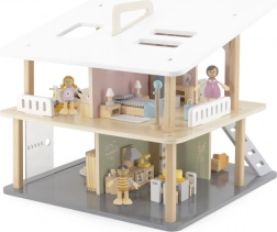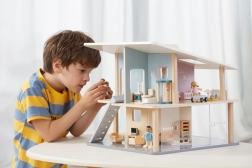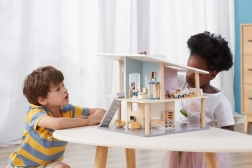Cette maison de poupées en bois moderne offre aux enfants un espace de jeu libre et stimule l’imagination. La structure ouverte permet un accès facile à toutes les pièces, les deux niveaux et la terrasse invitent à créer leurs propres histoires. Grâce à son format portable, elle se déplace et se range facilement.