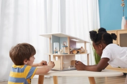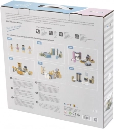 L’intérieur peut être complété par des ensembles thématiques de mobilier (cuisine, salon, chambre, chambre d’enfant et salle de bains), qui élargissent les possibilités de jeu et favorisent l’apprentissage de la vie domestique.