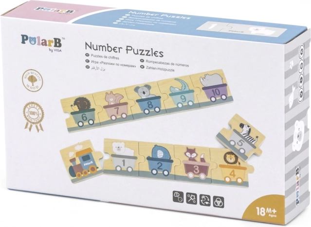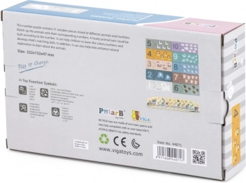 Puzzle en bois PolarB avec chiffres et animaux. 31 pièces pour apprendre le comptage, les couleurs et la logique. Jeu Montessori sûr pour enfants dès 18 mois.