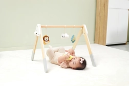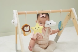 Cette arche de jeux en bois de qualité convient dès le 1er mois. Son aspect naturel et ses couleurs douces s’intègrent à tous les intérieurs. Les jouets suspendus attirent l’attention de bébé grâce aux sons et aux textures variées qui stimulent la vue, l’ouïe et le toucher.