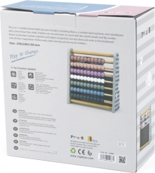 Ce abacus multifonction 3‑en‑1 réunit apprentissage et jeu. Grâce aux perles colorées, les enfants s’exercent au calcul ; avec les cubes basculants numérotés, ils apprennent à reconnaître les chiffres et les relations simples ; et sur l’ardoise à craie, ils peuvent écrire ou dessiner leurs premiers exercices et illustrations.