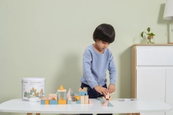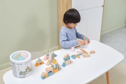 Ce jeu de construction en bois de qualité, présenté dans un seau, offre 50 pièces soigneusement travaillées aux agréables couleurs pastel. Les enfants construisent des petites maisons, des tours et toute une ville tout en développant la coordination, la pensée logique et la créativité.