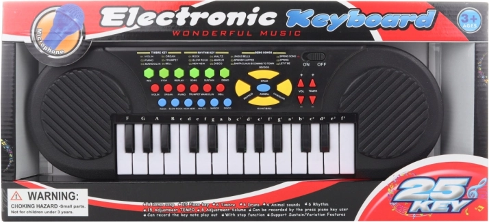Un piano amusant pour enfants avec 25 touches ouvre les premières portes vers le monde de la musique. Il propose différentes mélodies d’accompagnement, la possibilité de changer les sons d’instruments et une commande simple. Un choix idéal pour les enfants à partir de 3 ans afin de développer le sens du rythme, l’ouïe et la créativité.