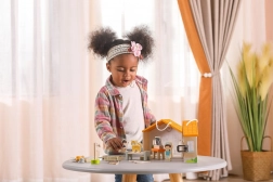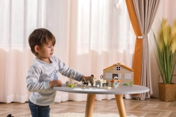 Le jouet est magnifiquement réalisé en bois de hêtre et peint avec des couleurs non toxiques. Une serrure métallique empêche la perte des figurines, assurant sécurité et organisation pendant le jeu.