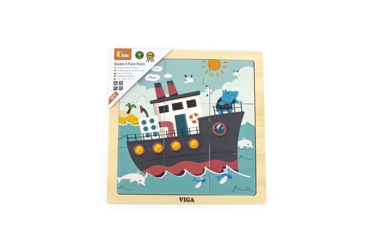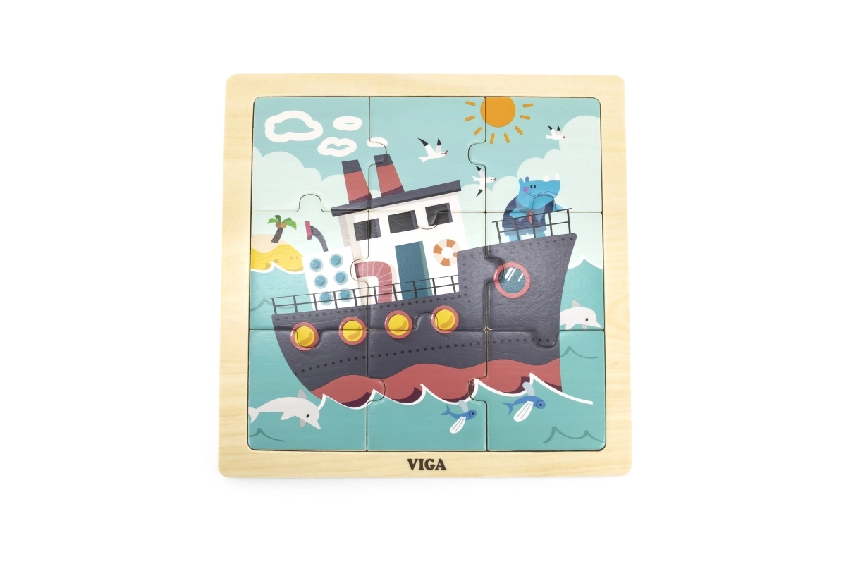 Ce puzzle en bois avec un motif de bateau coloré et d’animaux marins comprend 9 pièces thématiques qui s’insèrent dans des découpes fraisées de la plaque. Des couleurs vives et des formes simples favorisent la concentration et motivent les enfants à assembler encore et encore.
