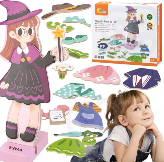 Puzzle magnétique à habiller de la marque VIGA est un excellent jouet didactique pour les enfants. Les enfants peuvent habiller librement la figurine en bois de fille et combiner 44 pièces de vêtements, développant ainsi leur motricité fine, leur créativité et leur coordination œil-main.