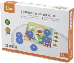 Le set comprend 10 cartes recto verso (20 motifs) avec des animaux marins et d’autres images. Les enfants devinent à quelle image proposée correspond l’élément caché – s’ils ne sont pas sûrs, ils dévoilent un nouvel indice en soulevant un jeton. La fabrication en bois de qualité et les peintures non toxiques et respectueuses de l’environnement assurent un jeu sûr pour les plus petits.
