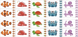Le set comprend 10 cartes imprimées recto verso – au total 20 motifs de jeu avec des animaux marins et d’autres thèmes.