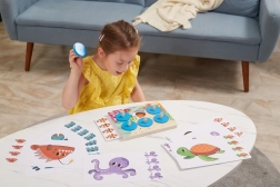 Partez à la découverte des secrets de la mer avec un jeu éducatif en bois à la fois ludique et stimulant. En insérant des cartes thématiques dans le plateau en bois et en révélant progressivement les jetons ronds avec poignées, les enfants entraînent leur concentration, leur mémoire et leur discrimination visuelle des détails. Idéal pour jouer seul ou en famille.