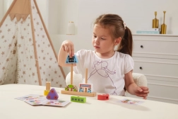Des cartes avec différents motifs sont incluses – les enfants entraînent la logique, l’attention et la précision en empilant étape par étape.