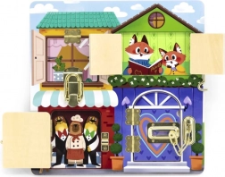 Grâce aux différents mécanismes, les enfants entraînent leur motricité fine, leurs capacités de préhension et leur coordination œil-main. Les illustrations colorées et le bois agréable font de ce jouet un accessoire attrayant et durable pour la chambre d’enfant.