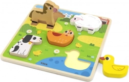 Ce joli puzzle en bois sur le thème de la ferme comprend 5 pièces robustes – un cheval, un mouton, une poule, un chien et un canard. Les enfants placent les animaux dans les ouvertures correspondantes sur la base colorée, entraînant ainsi la reconnaissance des formes et la mémoire visuelle.