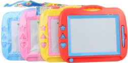 Tablette à dessin ludique pour les enfants dès 3 ans, favorise la créativité et la motricité fine. Grâce à la surface magnétique, les dessins se gomment facilement pour recommencer. Inclus : une stylo de dessin et 3 tampons pour créer des formes et des motifs. Idéale pour dessiner à répétition sans désordre à la maison comme en voyage.
