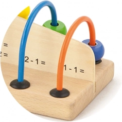 Ce support de calcul compact en bois offre aux enfants la joie de découvrir les nombres et les opérations mathématiques simples. Des exercices sont indiqués sur la planche en bois et l’enfant associe le bon nombre de perles sur les arceaux métalliques. Grâce à un principe intuitif, les enfants apprennent naturellement à reconnaître les chiffres, à compter et à comprendre le lien entre l’exercice et le résultat.