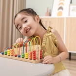 Des exercices simples sont imprimés sur le socle. L’enfant déplace les perles et associe le bon nombre – un entraînement visuel et amusant à l’addition et à la soustraction.