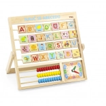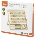 Alphabet et horloge en bois en langue tchèque. Les enfants peuvent apprendre les lettres, les chiffres et se faire une idée générale de la lecture de l’heure. Chaque lettre a un mot au verso pour une meilleure mémorisation. Dimensions env. 32,5 × 32 × 2,3 cm. Dimensions de l’emballage env. 34 × 32,5 × 3 cm. Âge 3+