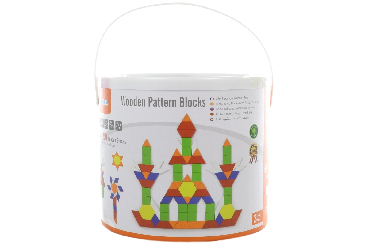 Ce riche ensemble de 250 blocs en bois s’inspire des principes Montessori et offre des dizaines d’heures de jeu constructif. Les enfants apprennent naturellement à reconnaître les couleurs et les formes, entraînent la représentation spatiale et la pensée logique tout en créant leurs propres figures et motifs à l’aide des modèles.