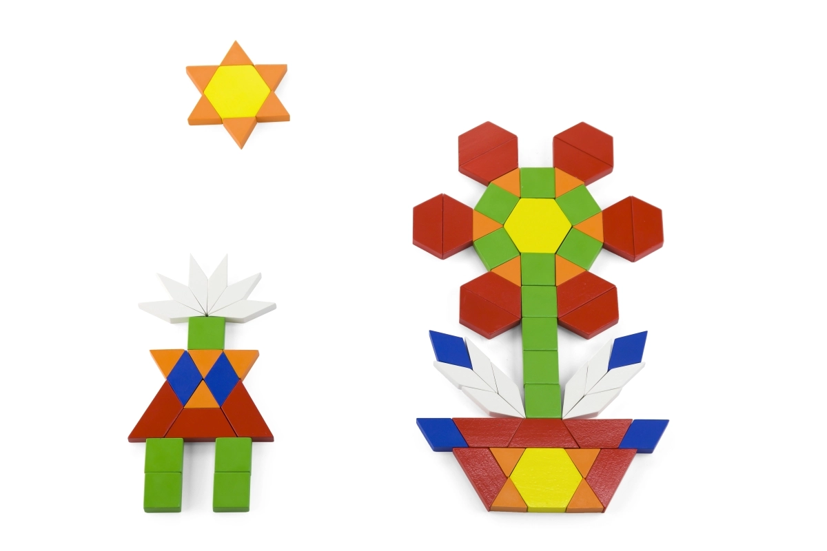 Le grand nombre de blocs plats en bois de différentes formes et couleurs stimule l’imagination et le développement de la représentation spatiale. Les enfants peuvent assembler des motifs, des animaux et même des images complètes.