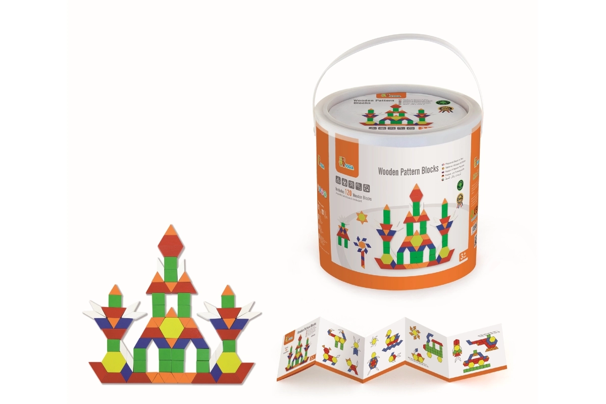 Les blocs sont fabriqués en bois laqué et colorés avec des peintures non toxiques aux teintes vives. Le couvercle en plastique avec anse facilite le transport et le rangement. L’emballage inclut également un livret d’idées, qui aide les débutants comme les petits créateurs à développer leur imagination.
