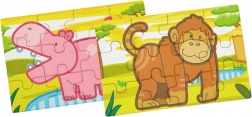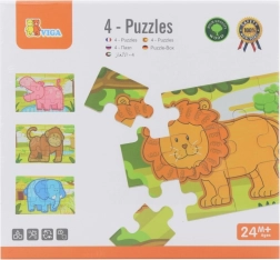 Ce set de puzzles en bois avec de joyeux animaux de la jungle fera plaisir à chaque enfant. Chaque motif présente des couleurs vives et des formes simples qui facilitent l’assemblage et développent naturellement l’imagination. Les pièces permettent de créer quatre images séparées ou une longue scène panoramique réunissant tous les animaux.