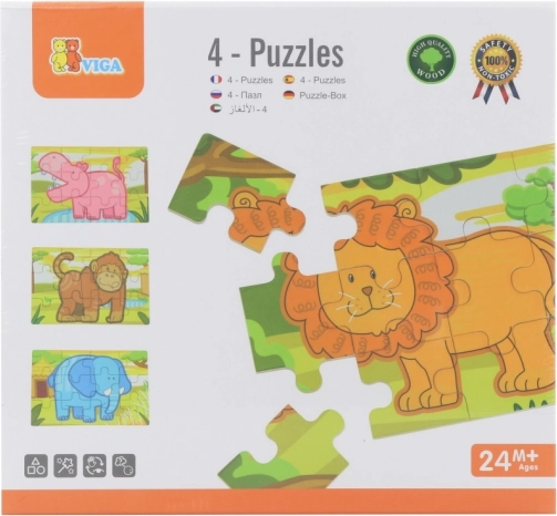 Puzzle en bois jungle – 4 animaux pour enfants dès 24 mois